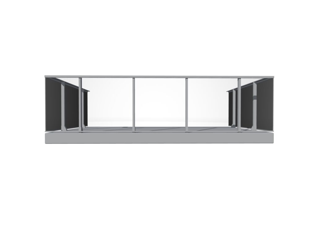 ALU rõdupiire põrandakinnitusega on moodne, vastupidav ja funktsionaalne lahendus nii sise- kui ka välistingimustesse. Kerge alumiiniumraam tagab roostekindluse, samas kui läbipaistvad klaaspaneelid säilitavad vaate ning lisavad turvalisust ja avarust.