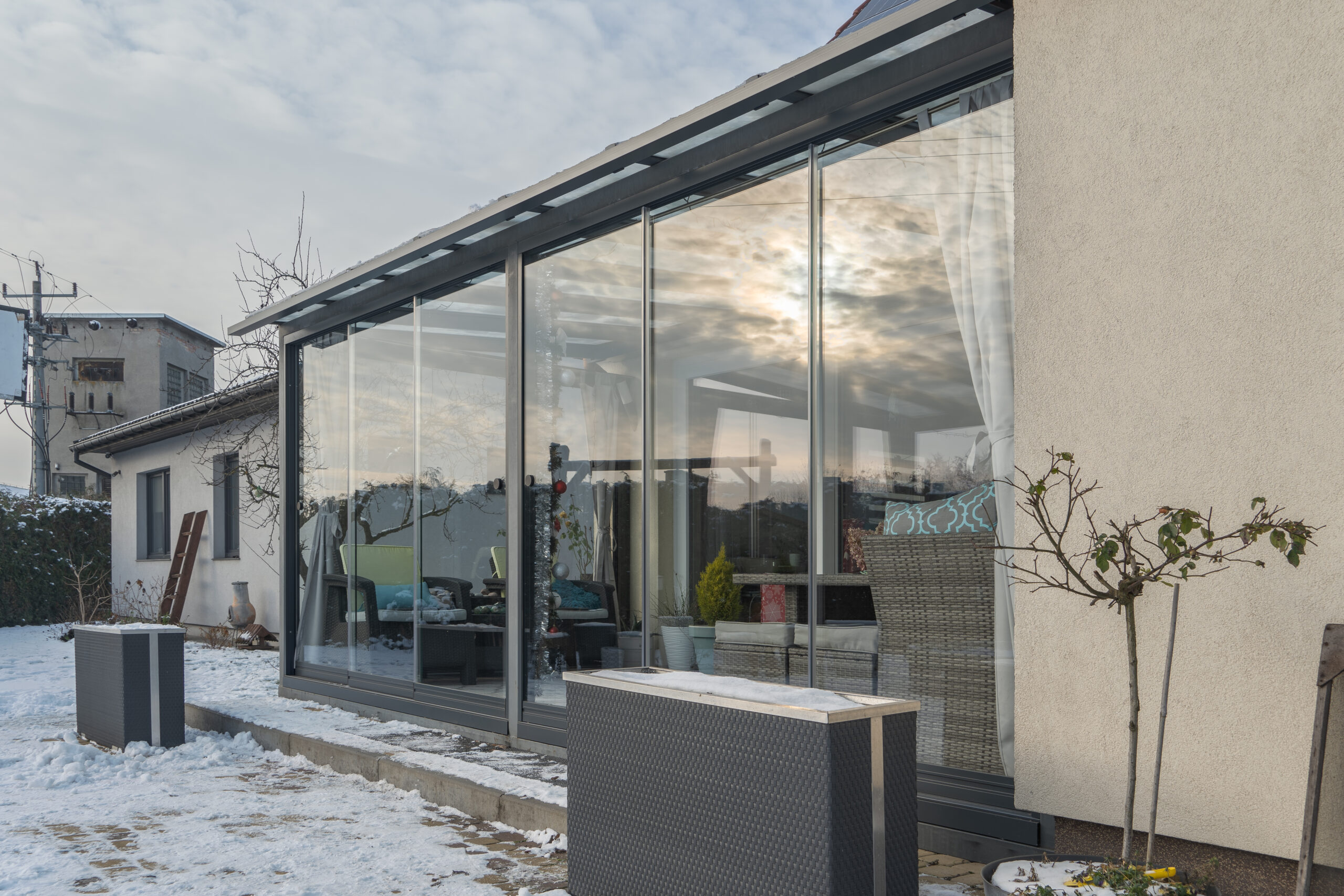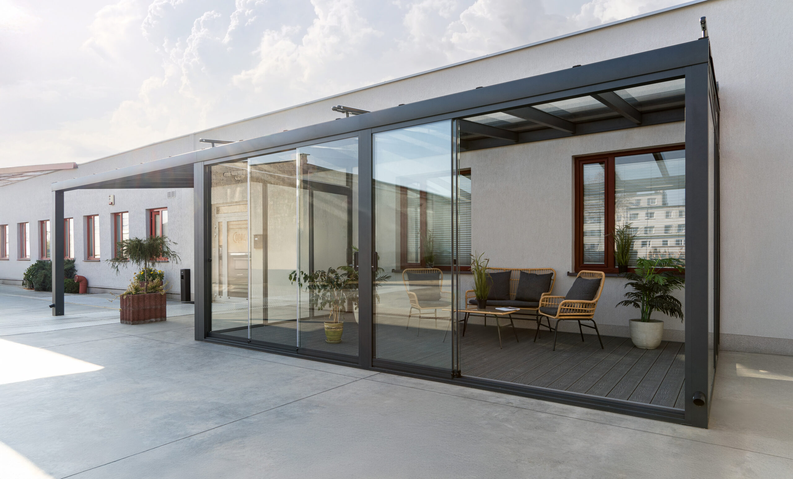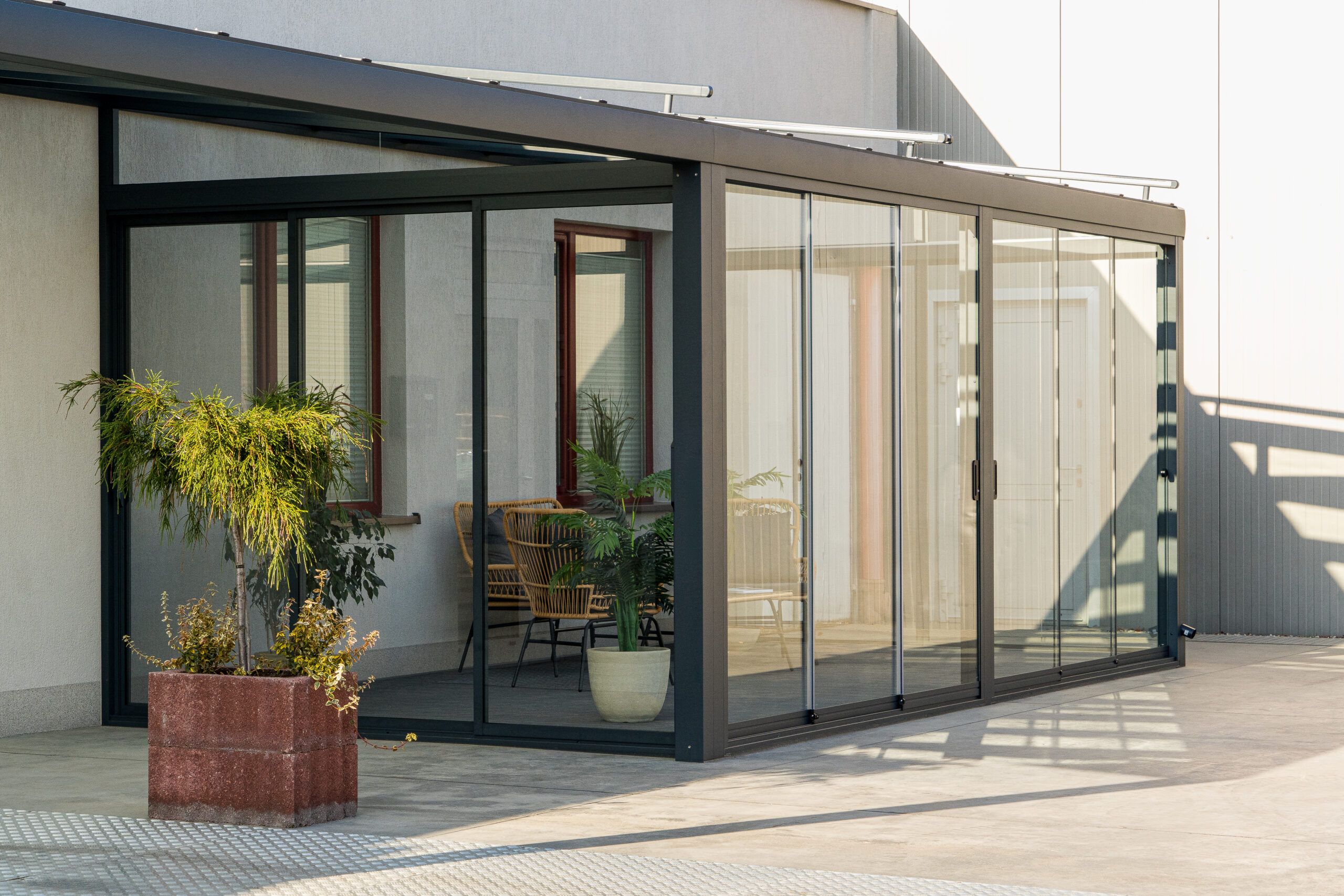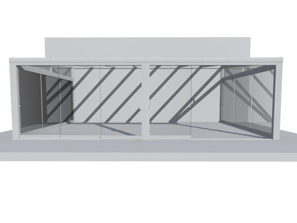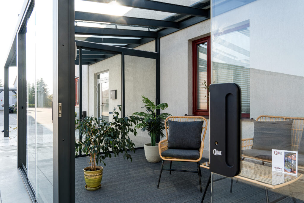 See süsteem sobib suurepäraselt kaasaegsetele terrassidele, pakkudes funktsionaalset ja stiilset lisaruumi aastaringseks kasutamiseks.